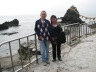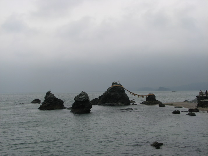 夫婦岩 大小二つの岩に注連縄が張られ、海中に眠る「興玉神石」なるものを遥拝する際の鳥居の役目を果たしているのだそうです。