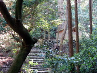 宮域ではありますが境内ではなく、神宮の森(高倉山)の側面に入口があります。祭神の名の由来は猪狩で、