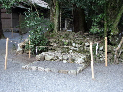 内宮の境界を守る神。社は無く五丈殿の東の方に2段の石畳の上に石神がまつられています。