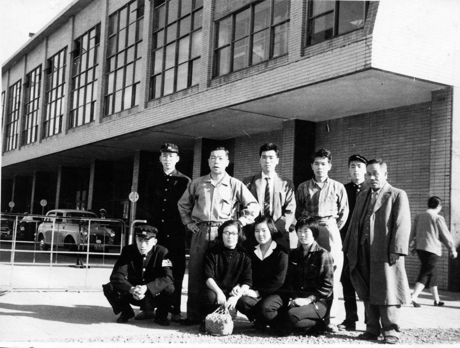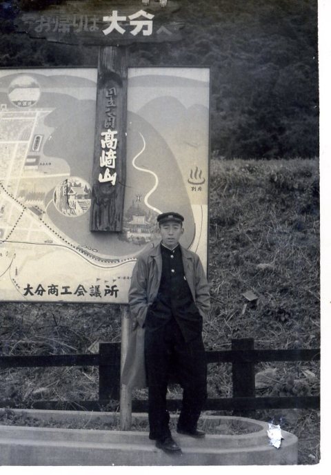 旅館万作前で |